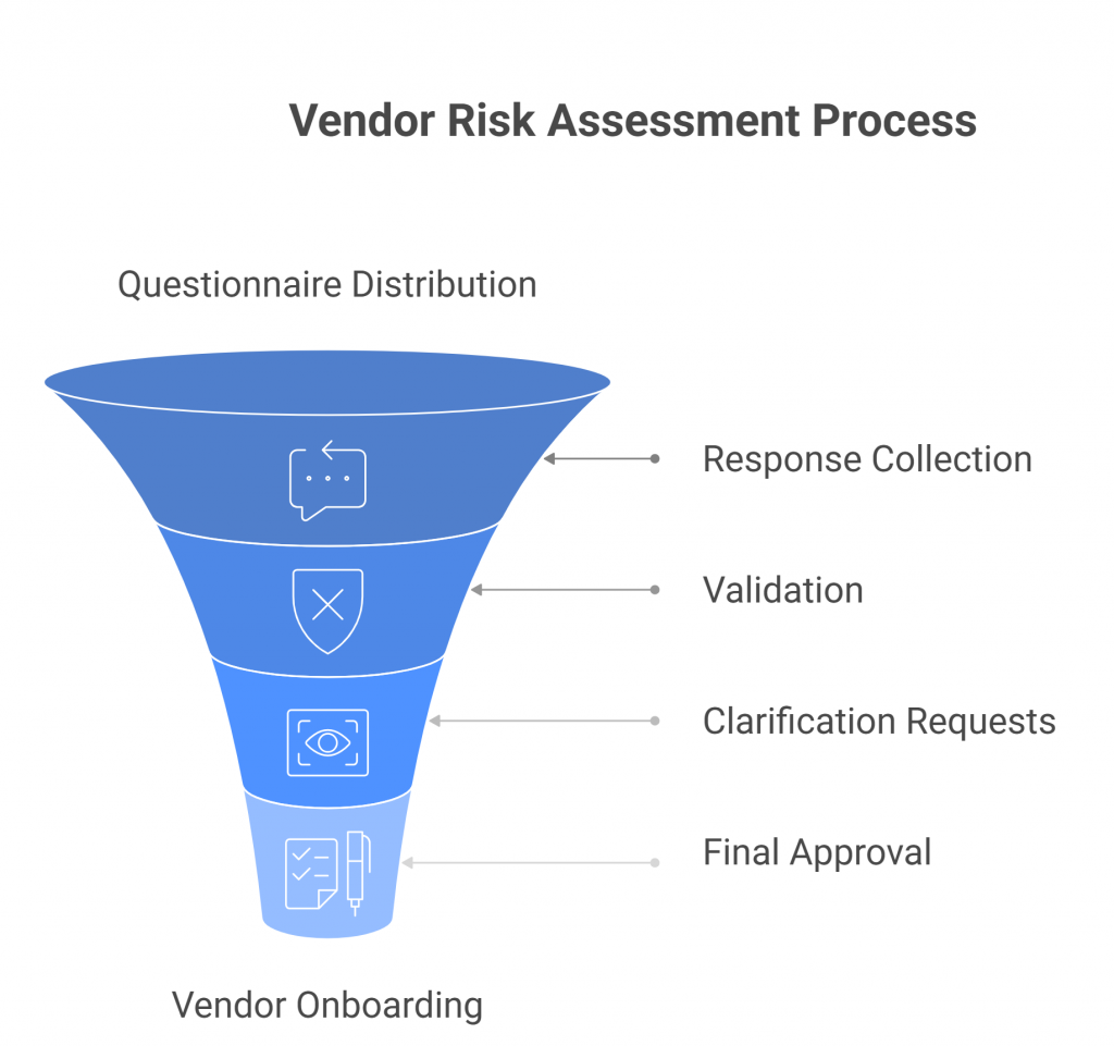 1. Questionnaire Distribution – Enterprises send vendors standardized or custom questionnaires, often hundreds of questions long, covering security, compliance, and operational practices.