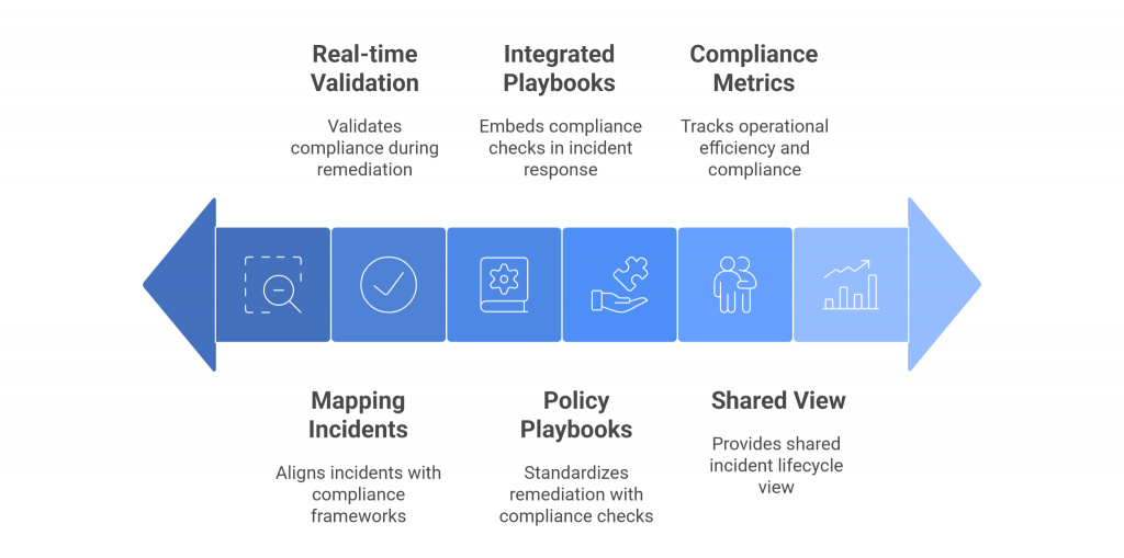 Traditional compliance reviews happen after incidents are resolved, often weeks or months later. With integration, validation occurs in real time. As remediation steps are executed, systems can automatically verify whether the actions meet compliance requirements.